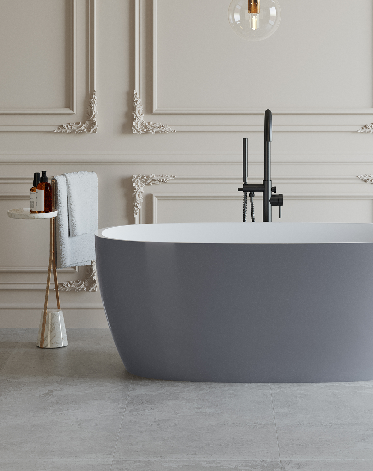 Holstein Cecilia Bathtub (160x70x61.5 cm), White/Light Gray